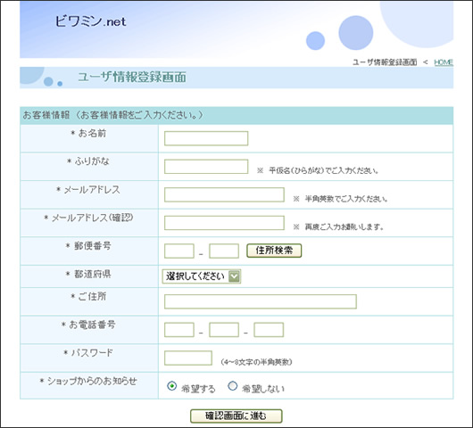「ユーザー情報登録画面」を開いて頂くと、下の画像のページに